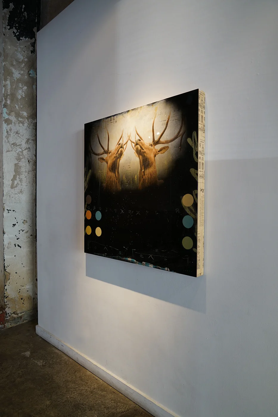EXPLORE, 40 x 40 x 3, Mixed Media on Panel, RESIN COATED