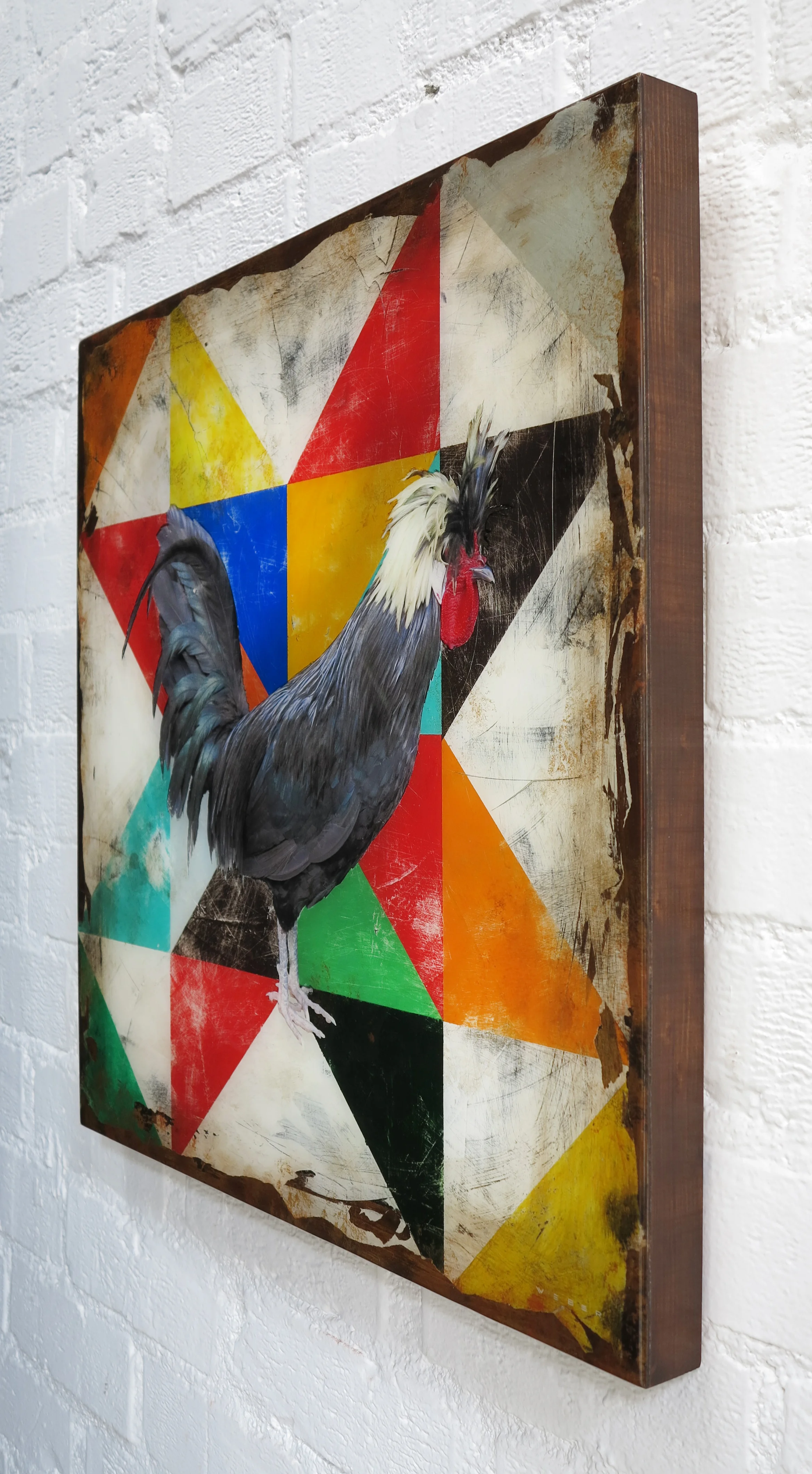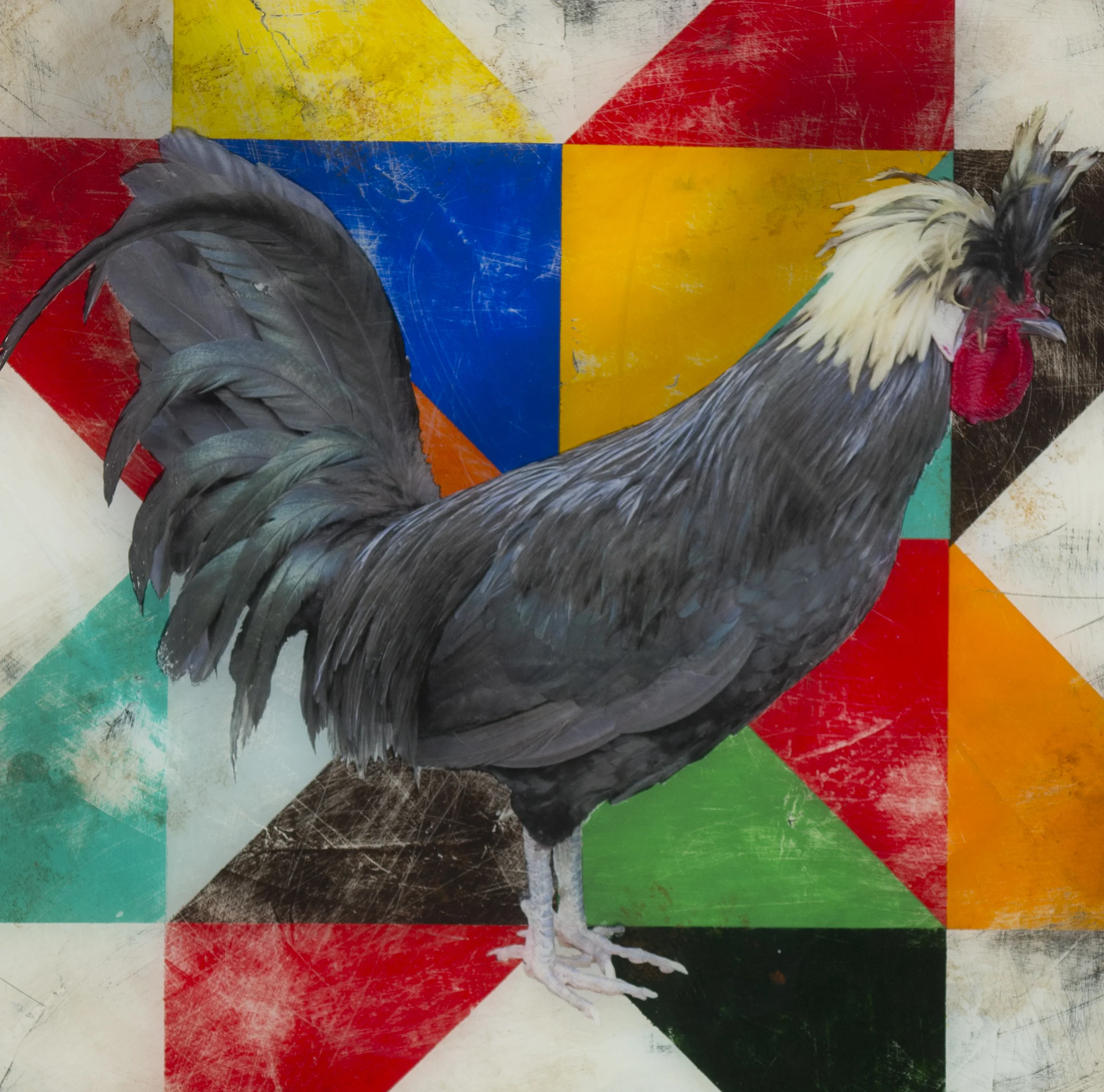 PRIMARY HEN, 24 x 24 x 1.5, Mixed Media on Panel, RESIN COATED