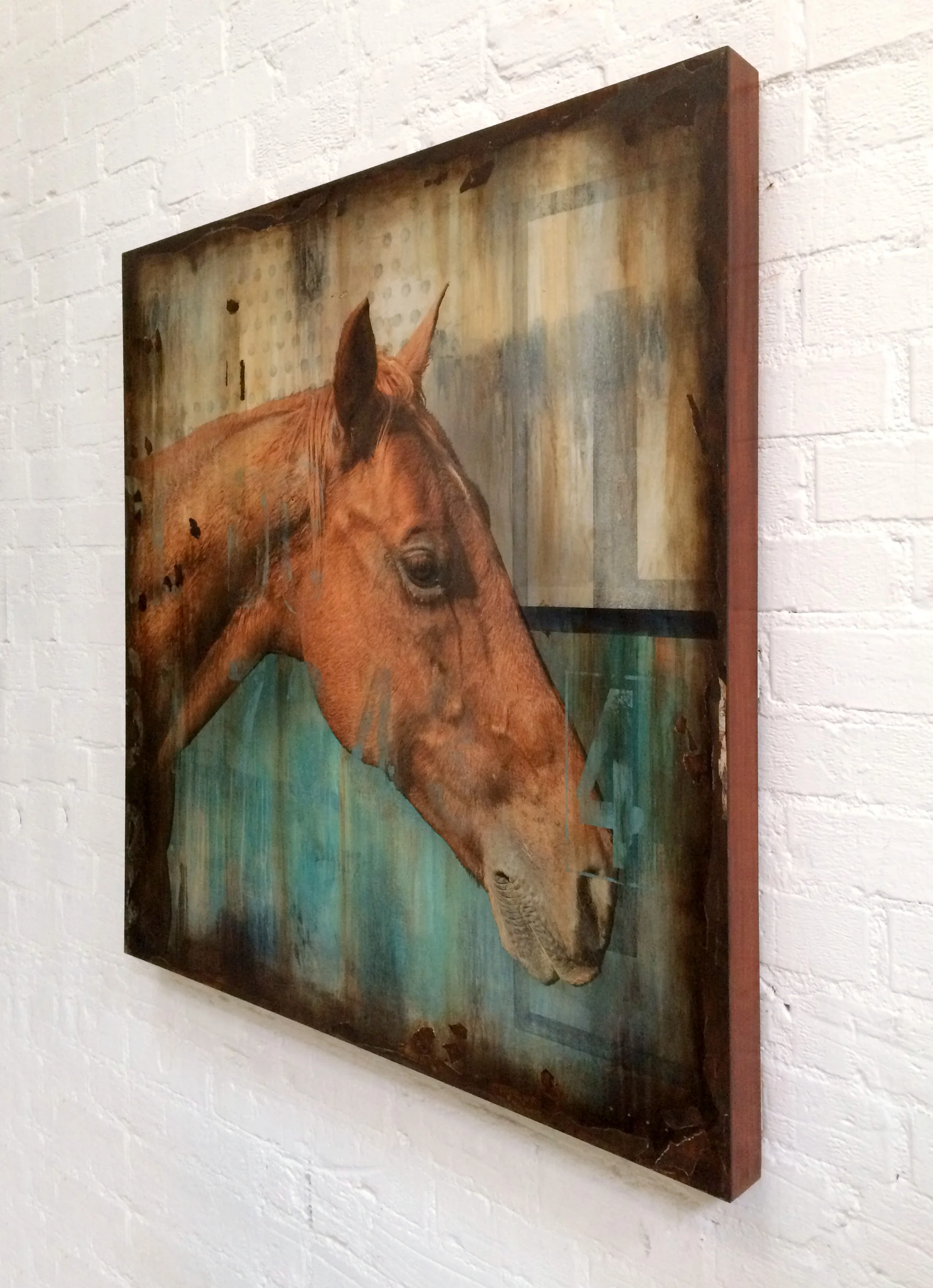 The following photographs are unedited images. These are intended to show the texture, finish and side cradle of the artwork. The first and last images are color calibrated to best represent the actual colors of the artwork.