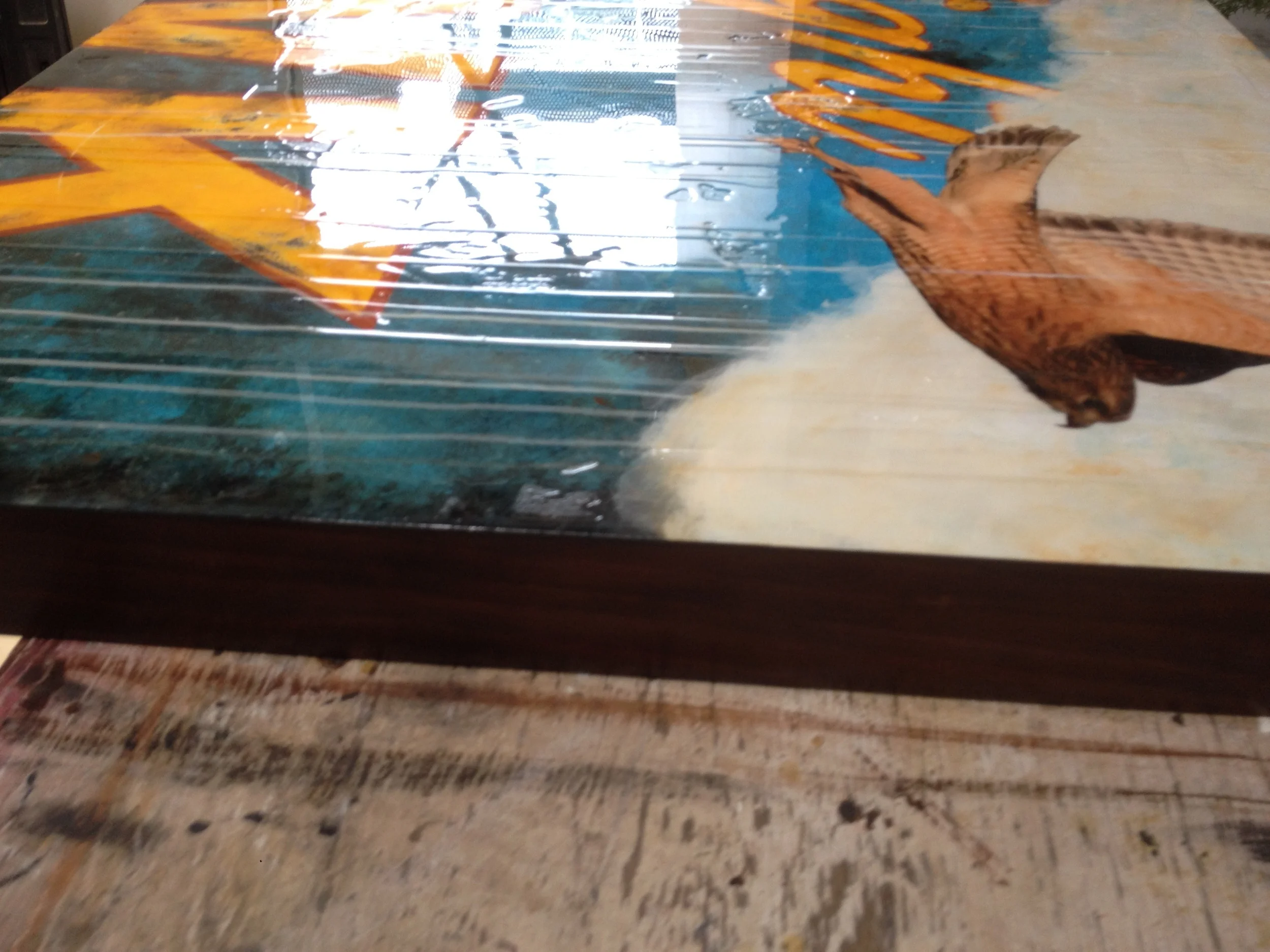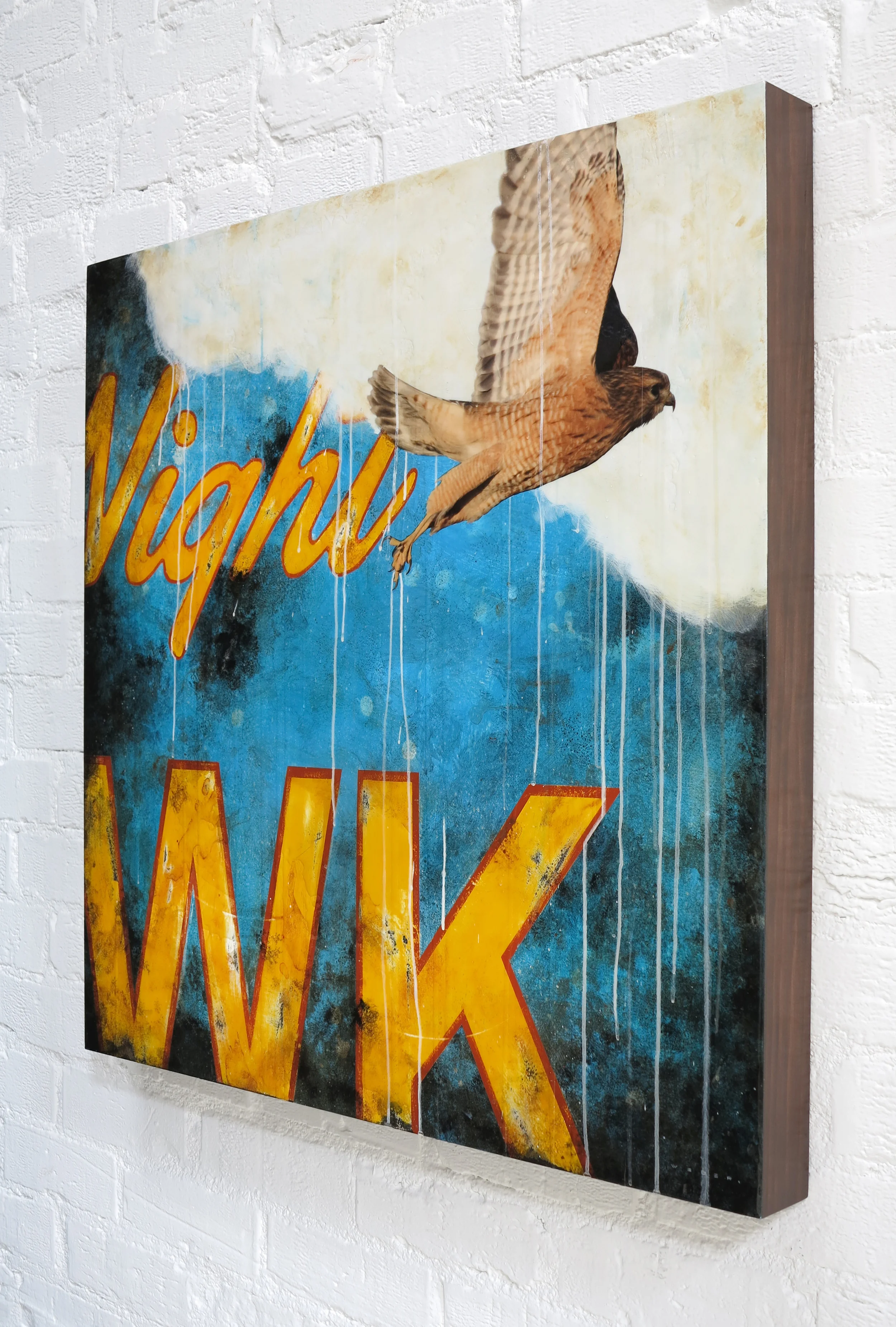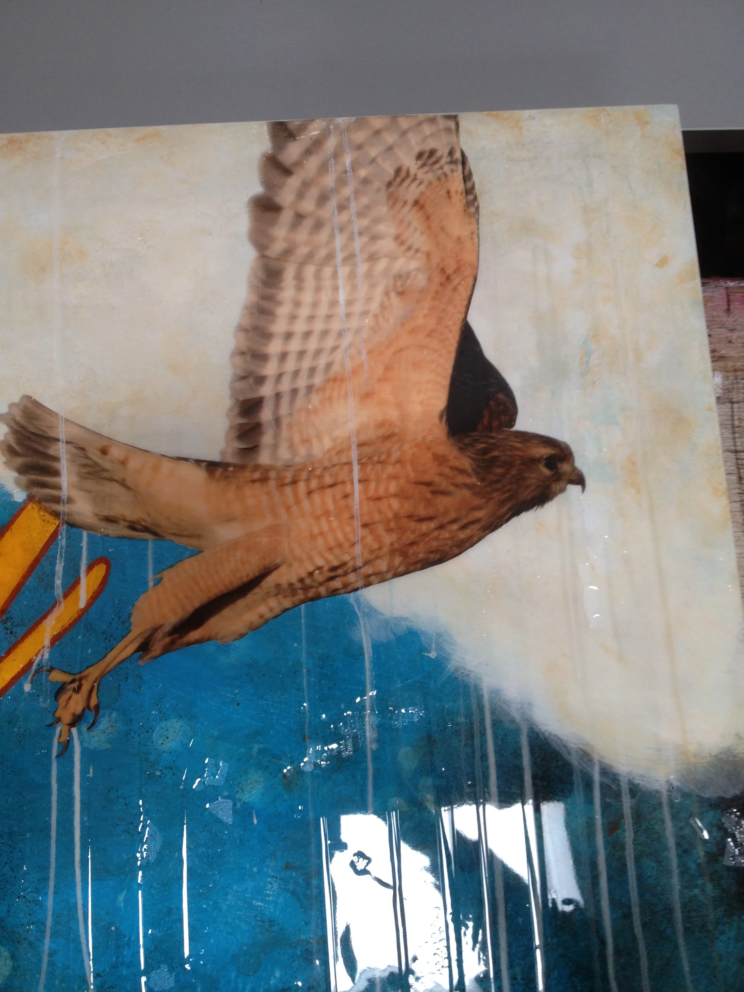 NIGHT HAWK, 36 x 36 x 3, Mixed Media on Panel, RESIN COATED