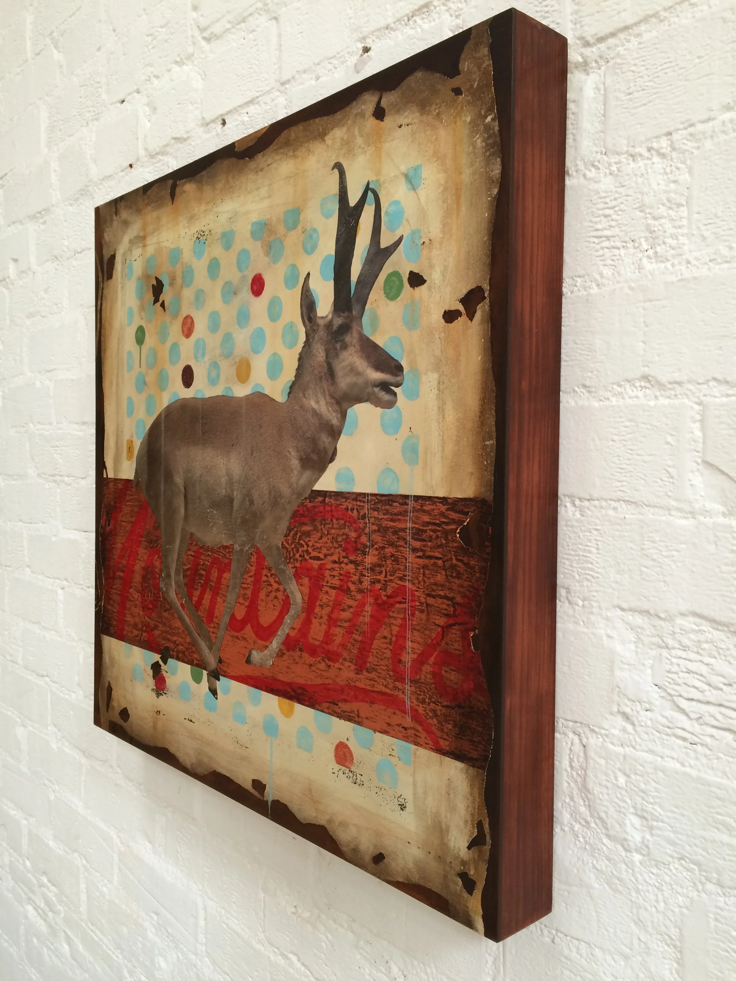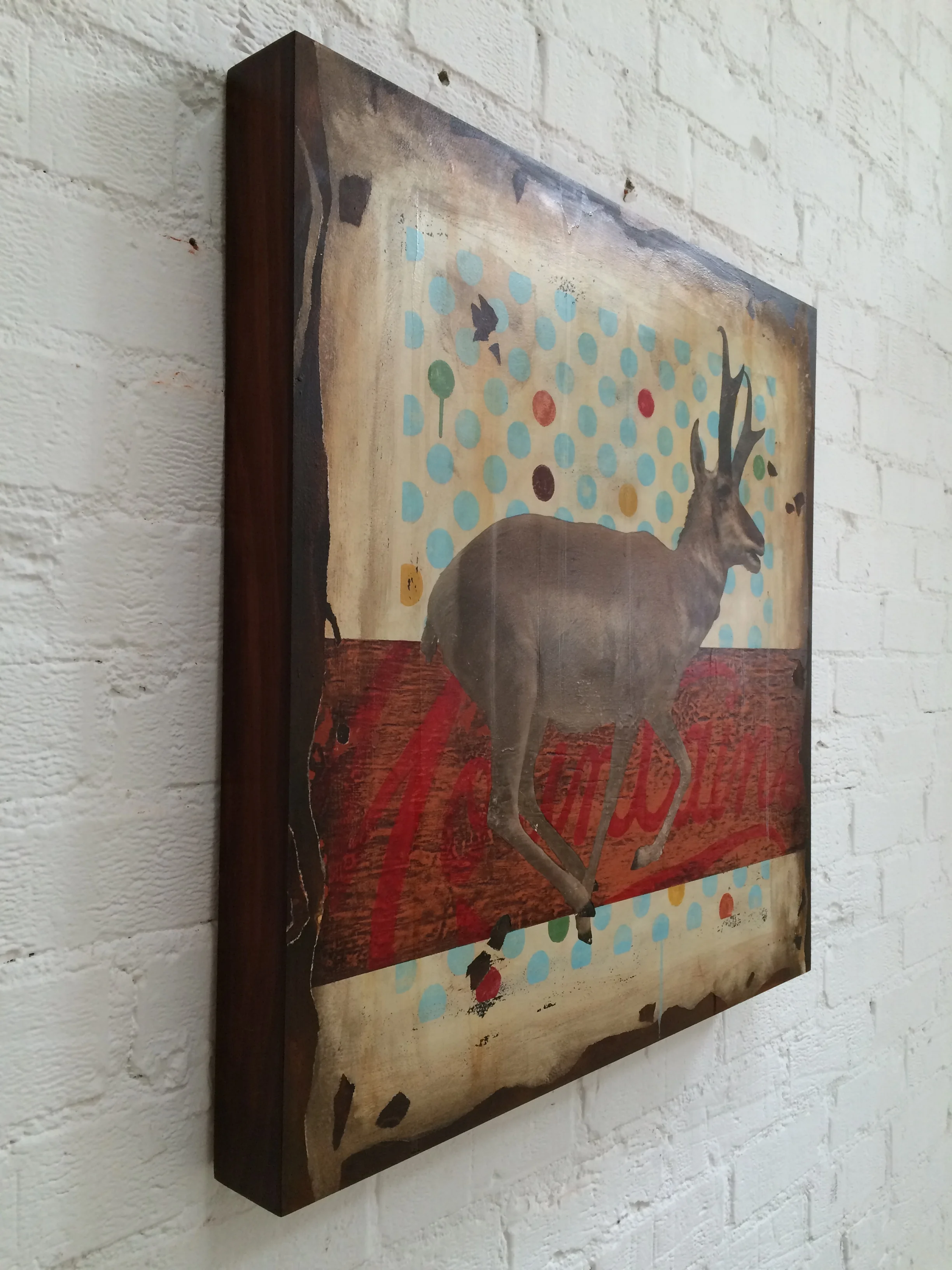 PRONGHORN LEAP, 30 x 30 x 3, Mixed Media on Panel