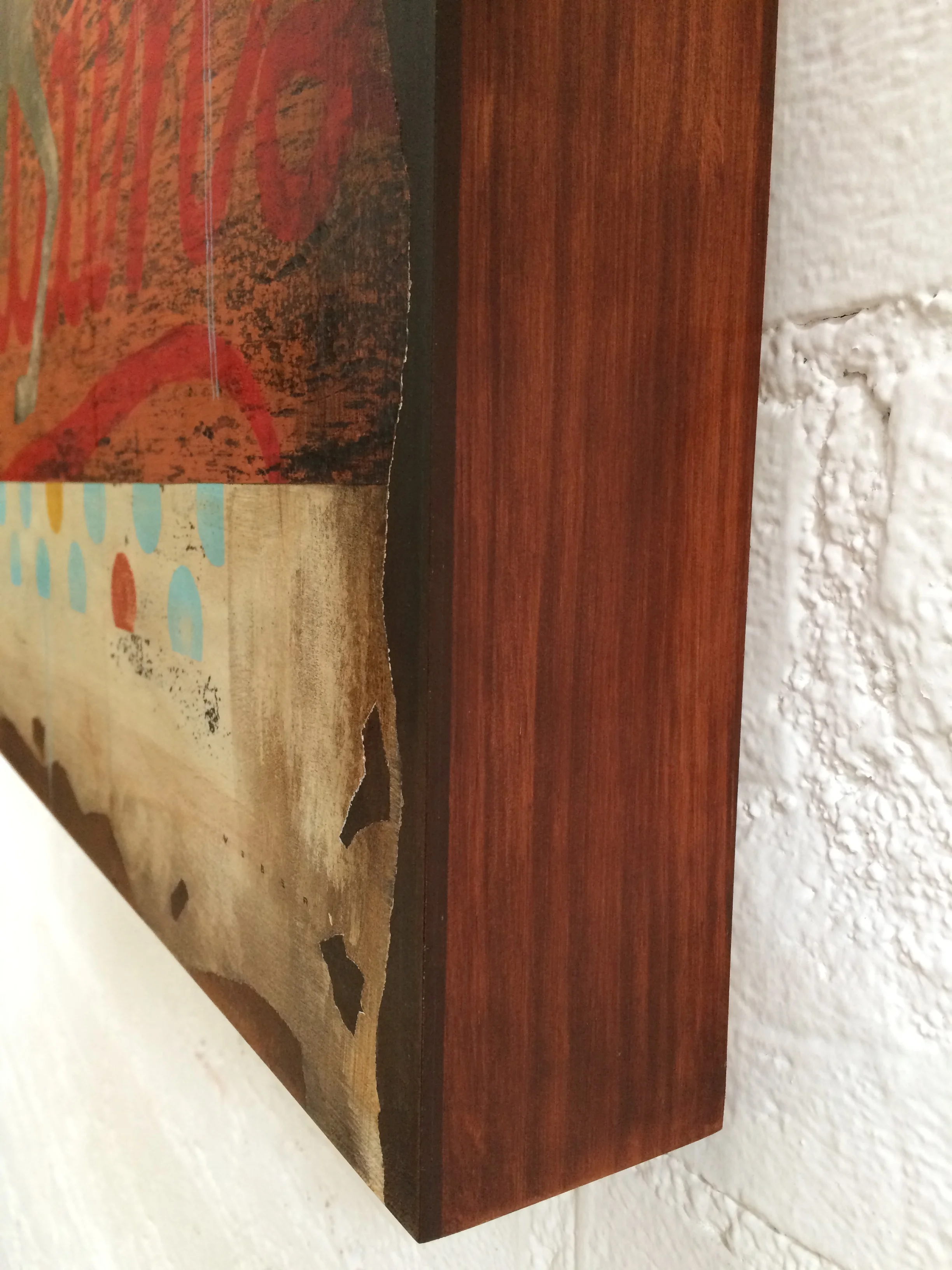 The following photographs are unedited images. These are intended to show the texture, finish and side cradle of the artwork. The first and last images are color calibrated to best represent the actual colors of the artwork.