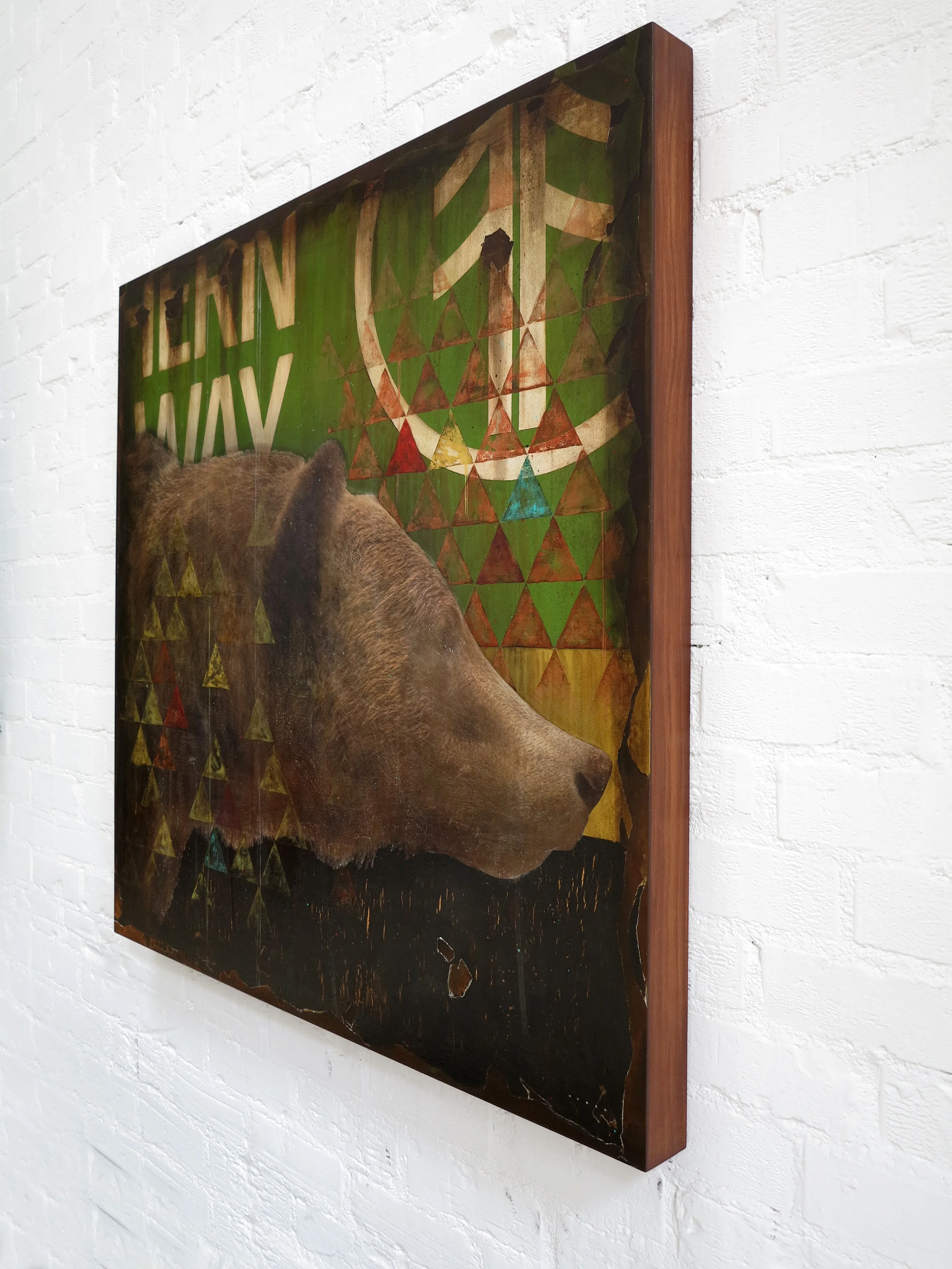 WESTERN GRIZZLY, 48 X 48 X 3, MIXED MEDIA ON PANEL, 2015, SOLD
